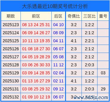 开奖追思:大乐透第2025132期奖号:01、09、10、12、19+06、07。其中奇偶比为3:2,三区比为4:1:0,无重号。
